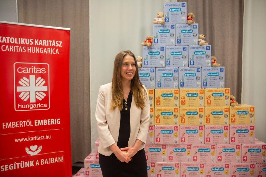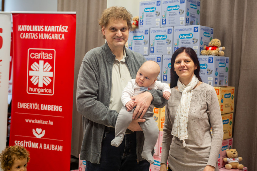 A megjelenteket Zagyva Richárd, a Katolikus Karitász országos igazgatóhelyettese köszöntötte. Elmondta, a családok fél évre elegendő pelenkát kapnak a DM (Drogerie Markt) üzletlánccal való együttműködés keretében, ami a gyerekek érkezését követően hathatós segítség a családnak. Az igazgatóhelyettes örömmel látja, hogy együttműködésük fejlődik, ma már gyerektáboraikat is támogatja az üzletlánc. Zagyva Richárd kiemelte, hogy az adományokat önkénteseik személyesen viszik el az otthonokba, így ez a családokkal való találkozás alkalma is.