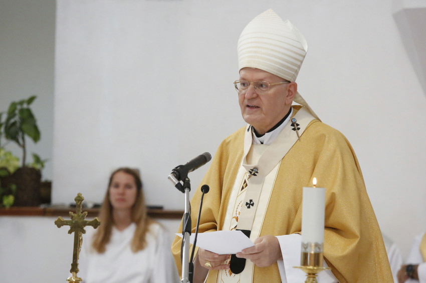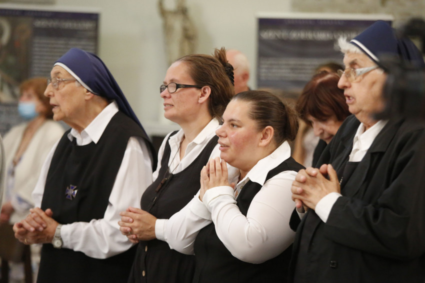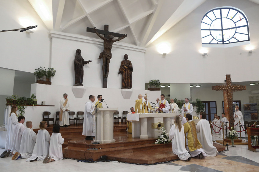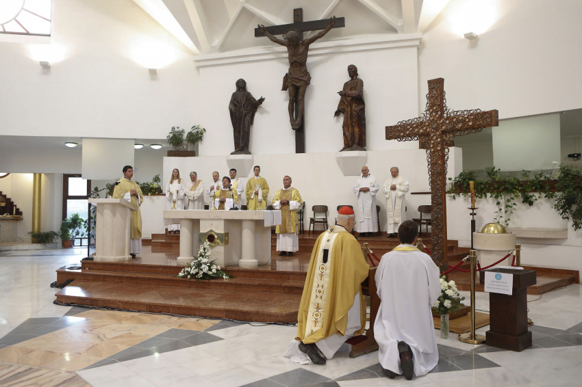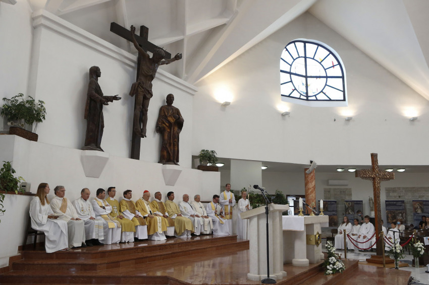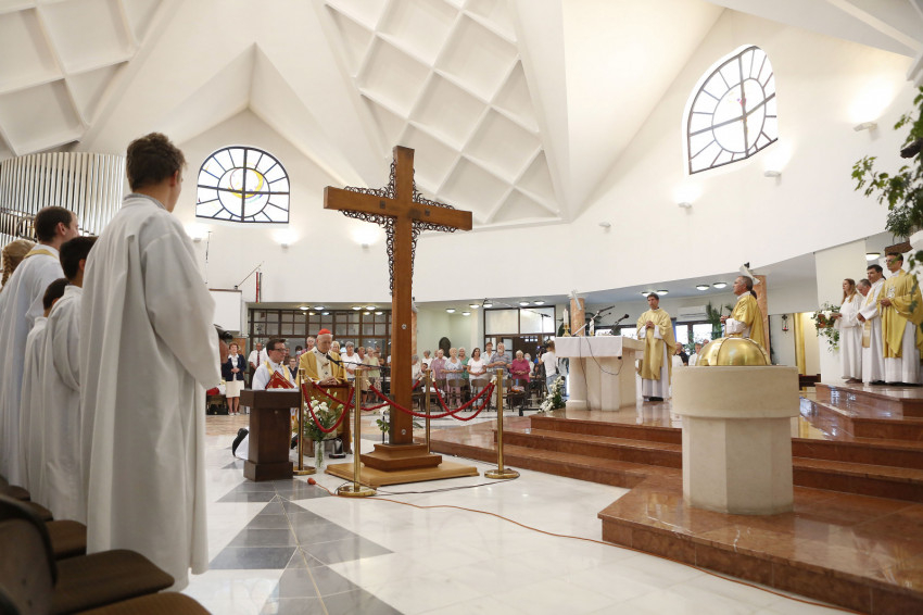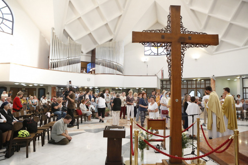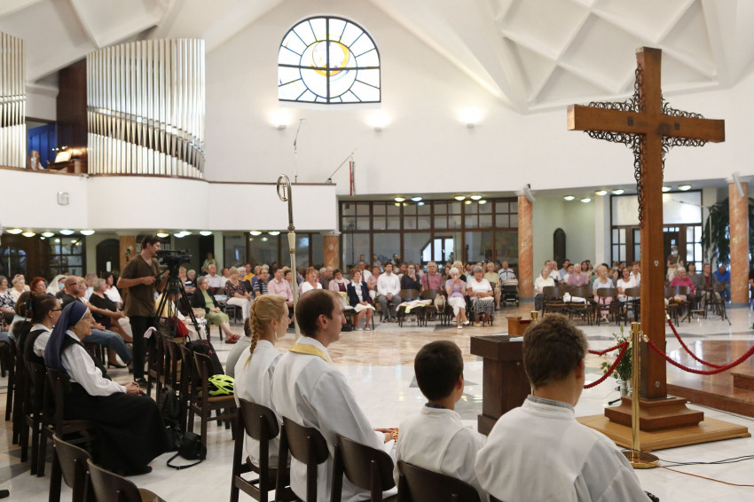 A mai szentmisét a Szent Kereszt tiszteletére végezzük. A Nemzetközi Eucharisztikus Kongresszust előkészítő több éves missziós folyamatnak ez a záró állomása. A kezdet még a püspöki kar római ad limina látogatásakor volt, a vatikáni apostoli palotában. Ferenc pápa ott áldotta meg a Missziós keresztet, amelyet azután városról városra, templomról templomra hordoztunk hazánkban és szerte a Kárpát-medencében. Eleinte a legismertebb magyar szentek ereklyéit foglaltuk a keresztbe, később újabb és újabb boldogok és szentek ereklyéi járultak hozzájuk, főleg a 20. század vértanúinak maradványai. Ahogyan a kereszt a szomszédos országokban is megjelent, az ottani egyházmegyék kérték, javasolták, máskor mi magunk kezdeményeztük, hogy annak a vidéknek a szentjei is képviselve legyenek Missziós Keresztünkben. Hiszen ők már együtt vannak, együtt kérik Isten irgalmát országainkra és népeinkre. Az egyes szentek életrajzát is összegyűjtöttük.