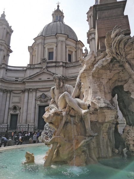 A Piazza Navona ékessége a Négy folyó kútja, közepén az egyiptomi obeliszkkel, hátterében a Francesco Borromini tervezte Sant’Agnese in Agone-templommal. A lenyűgöző szoborcsoport mozgalmasságát csak fokozza az állandóan csobogó víz látványa.