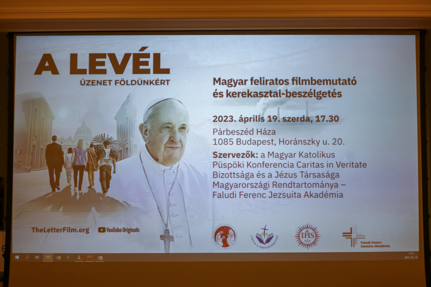 A klímaválságot és a nyomában támadt helyi kríziseket személyes történetek segítségével bemutató, s e súlyos helyzetben Ferenc pápa törekvéseit ismertető 81 perces dokumentumfil vetítése után a Párbeszéd Házában kerekasztal-beszélgetés kezdődött az alkotás üzenetéről Székely János püspök; Nevelős Gábor SJ; a JTMR-FFJA Átfogó Ökológia Műhely jezsuita referense, Benedek József; a JTMR-FFJA Átfogó Ökológia Műhely vezetője; a Miskolci és a Kolozsvári Egyetem tanára valamint Szabó Eszter, a Laudato Si Animátorképző koordinátorának részvételével.