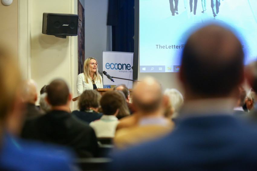 A püspök beszéde után Bánlaki Zsanett, az MKPK Caritas in Veritate Bizottságának irodevezetője felolvasta Cecilia Dall’Oglio, a 900 katolikus szervezetet összefogó Laudato Si’ Mozgalom európai programigazgatója üzenetét a filmbemutató magyar közönségéhez.