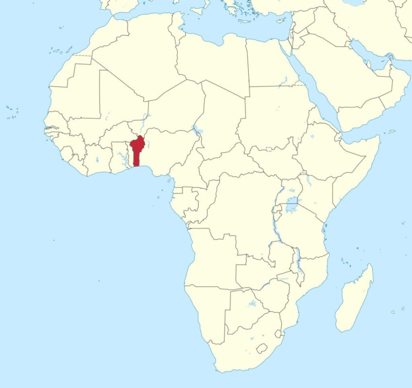 Benin, hivatalosan a Benini Köztársaság független állam Afrika nyugati részén. Nyugatról Togo, keletről Nigéria, északról Burkina Faso és Niger szomszédos vele, délen az Atlanti-óceán részét képező Guineai-öböl határolja. Fővárosa Porto Novo, de a kormányzati székhely az ország legnagyobb városában, Cotonouban található, amely Benin kulturális központja is egyben. A Magyarországnál területileg csak kicsit nagyobb (114 763 km²) Benin trópusi ország és az egyik legkevésbé fejlett országok közé tartozik. Gazdasága jelentősen függ a mezőgazdaságtól. Hivatalos nyelve a francia, de a lakosság gyakran olyan őshonos nyelveket beszél, mint a fon, a bariba, a joruba és a dendi. Lakossága: 11 175 692 fő. A népesség körülbelül 48%-a keresztény (többségük római katolikus); a muszlimok aránya körülbelül 28%. A lakosság több mint egytizede a vudu híve; maradék nagyrészt más hagyományos vallás híve. (Forrás: Wikipédia)