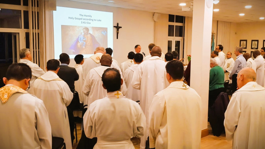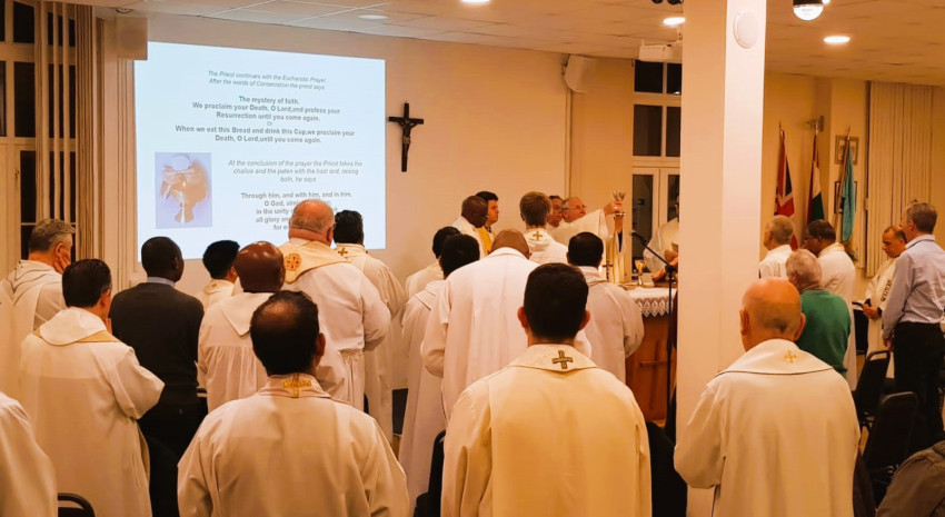 Az előadást ünnepi szentmise követte, melynek főcelebránsa Paul McAleenan püspök volt, koncelebrált Philip Miller westminsteri egyetemi lelkész, püspöki megbízott és Adrian Cullen állandó diakónus, mindketten az angliai nemzetiségi lelkészségek koordinátorai. Szentbeszédében – kapcsolódva az előadásban elhangzott gondolatokhoz – Paul McAleenan a külhoni lelkészségek egyedülálló küldetését helyezte a középpontba, és minden papot arra biztatott, hogy bátran kövesse Szent József példáját a lelkipásztori szolgálatban is.