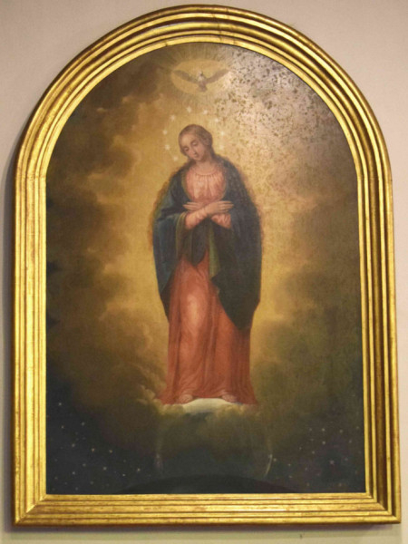 Ma a templomhajó északi falán látható a Hornyik József paloznaki plébános által (1854–1872) rendelt olajkép, mely a Mária-tisztelet egy másik hagyományában gyökerezik. A Napba öltözött asszony ikonográfiája János evangélista apokaliptikus látomásának leírásán alapul, melyben Szűz Mária „egy nagy jel”, kinek „öltözete a nap, lába alatt a hold, fején tizenkét csillagból a korona” (Jel 12,1–2). Ezen a képen Szentlélek galambja is megjelenik feje fölött.