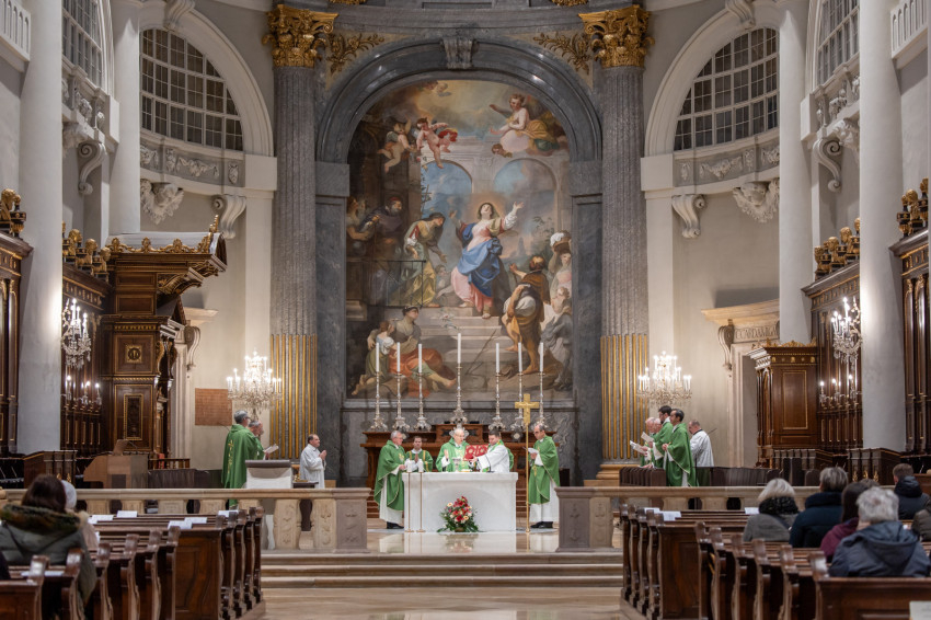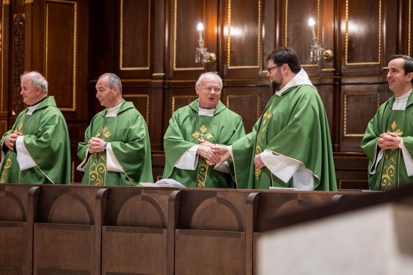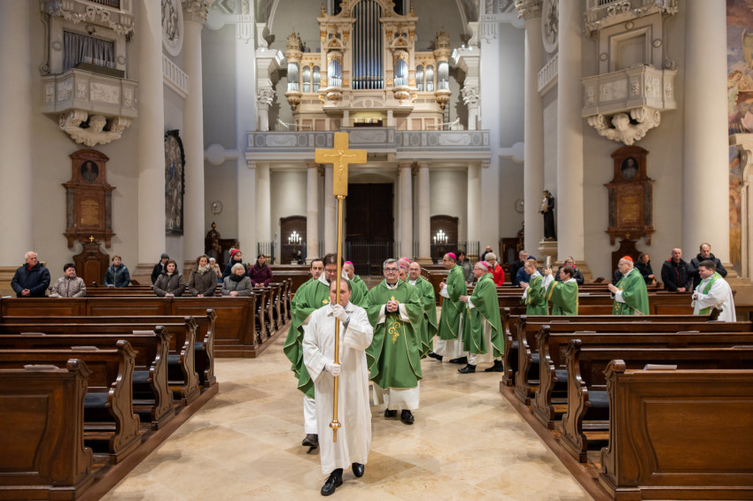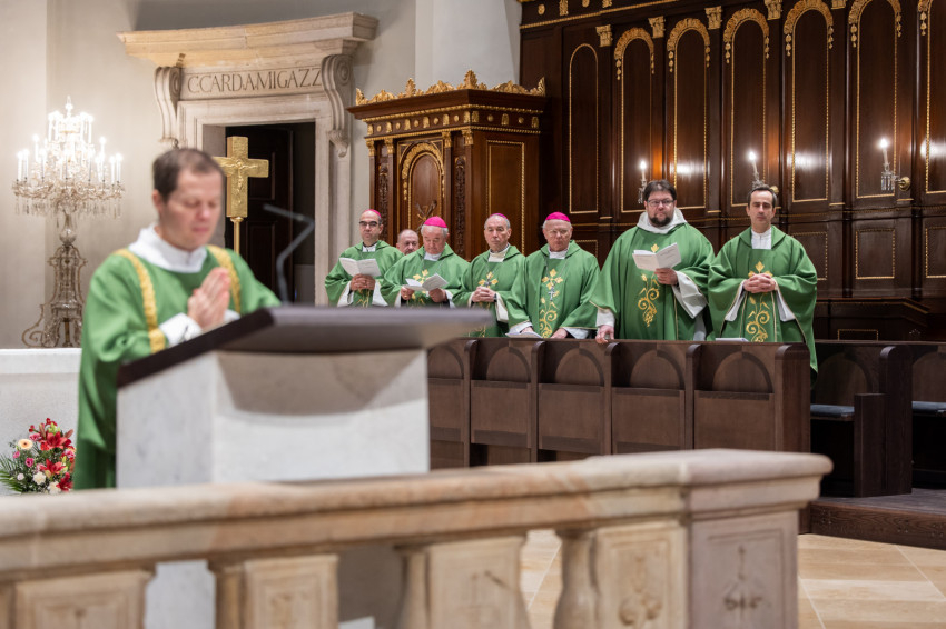 A szerda reggeli szentmisét latin nyelven Erdő Péterrel együtt mutatta be Székely János, a Magyar Katolikus Püspöki Konferencia (MKPK) elnöke; Böcskei László nagyváradi megyéspüspök, a Romániai Katolikus Püspöki Konferencia (CER) elnöke; Udvardy György veszprémi érsek, az MKPK elnökhelyettese; Aurel Percă bukaresti érsek; Felföldi László pécsi megyéspüspök, Marton Zsolt váci megyéspüspök és Varga Lajos váci segédpüspök; Németh Gábor, az MKPK titkára és Francisc Ungureanu, a CER titkára.