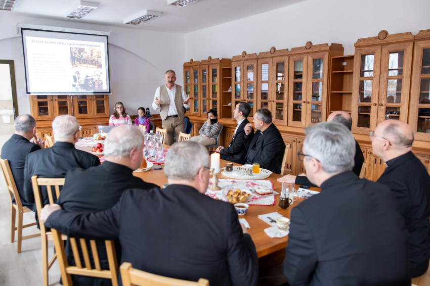 Az iskola új épületének könyvtárhelyiségében egy nagy asztalnál foglaltak helyet a püspöki konferenciák állandó tanácsainak tagjai. Horváth Szilárd igazgató bemutatta nekik különleges oktatásukat, csupa érdekességet osztva meg a Búzaszemről.