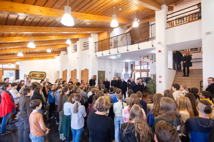 A püspökök betértek a negyedikesek közé; a gyerekek egy boltív alatti helységben, ahol a reggeli megérkező kört szokták tartani, egy moldvai dalt adtak elő citera- és kobozkísérettel. A püspököknek annyira tetszett az előadás, hogy kértek tőlük még egy éneket.