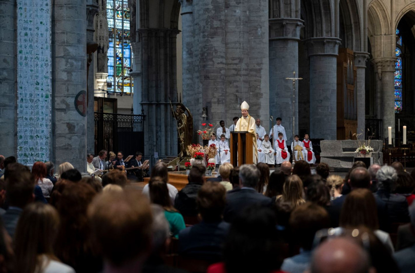 A szentmisét Luc Terlinden mechelen-brüsszeli érsek, Belgium prímása; Noël Treanor ír érsek, az Európai Unióhoz delegált apostoli nuncius; Manuel Barrios Prieto, az Európai Püspöki Konferenciák Tanácsa (CCEE) főtitkára és Benoit Lobet, a székesegyház plébánosa, valamint Mohos Gábor, a külföldi magyar katolikusok lelkipásztori ellátásával megbízott püspök celebrálta magyar, angol, francia és holland nyelven.