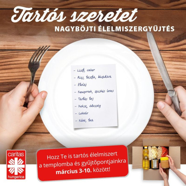 Tegyünk tanúságot az irgalmas szeretet gyakorlásáról az idei Nagyböjtben is, és járuljunk hozzá tartós élelmiszerrel a Katolikus Egyház segélyakciójához!