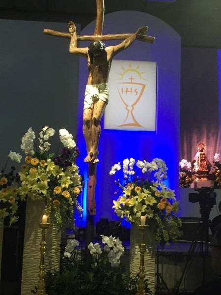 A zsúfolásig megtelt templomban – amely egyébként a főegyházmegye egyik szentélye (shrine), kiemelt temploma és zarándokhelye – a kórus és zenekar helyi, visayai nyelven, cebui nyelvjárásban előadott énekkel nyitotta meg a szentmisét (Cebuban nem a Manilában és környékén elterjedt tagalogot beszélik, hanem az ún. visayai nyelvet, amelynek szigetenként más és más nyelvjárása gyökeresedett meg). A szentmise magyar nyelven lett bemutatva, kifejezve a küldöttek iránti tiszteletet, és az eltérő kultúrák egységét az Oltáriszentség körül. A mikrofonba mondva elhangzottak a nép válaszai magyar nyelven, de a tömeg természetesen a saját nyelvén imádkozott, illetve az énekek (kivéve a latin ordináriumot) ugyancsak a nép nyelvén hangoztak fel. Az olvasmányok és Erdő Péter prédikációja angol nyelvű volt.
