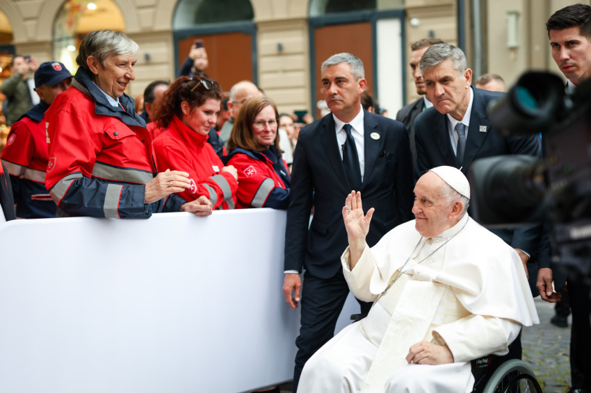 A Szentatya a kijelölt szolgálati helyük előtt is elhaladt, így személyesen is köszönthették őt a Máltai Mentőszolgálat önkéntesei.