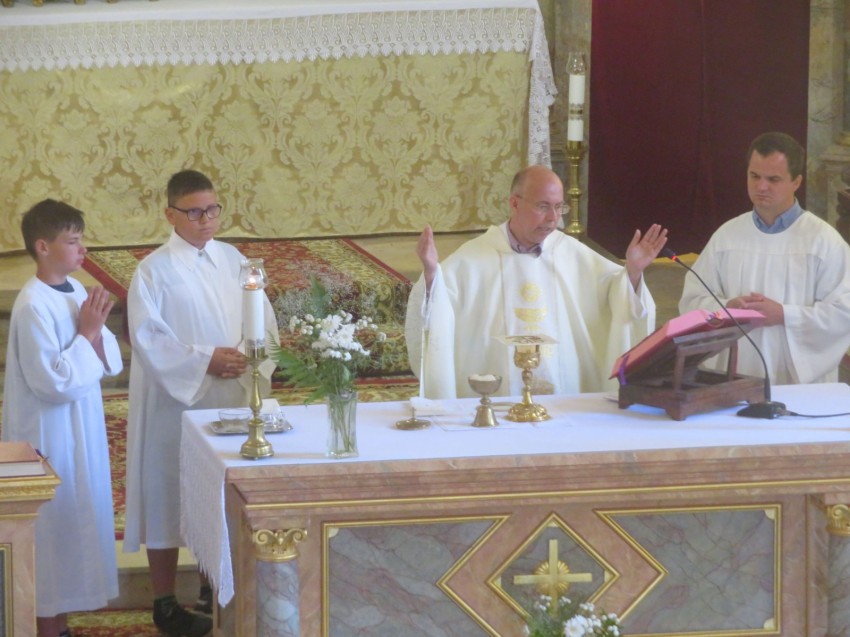 Ezen a napon csak a kegytemplomban volt szentmise, amelyre a hívek virágokból négy oltárt emeltek. A körmenetet a templom parkjában rendezték meg, ahol Bukovics István atya az Oltáriszentséget hordozva járta körül a templomot.