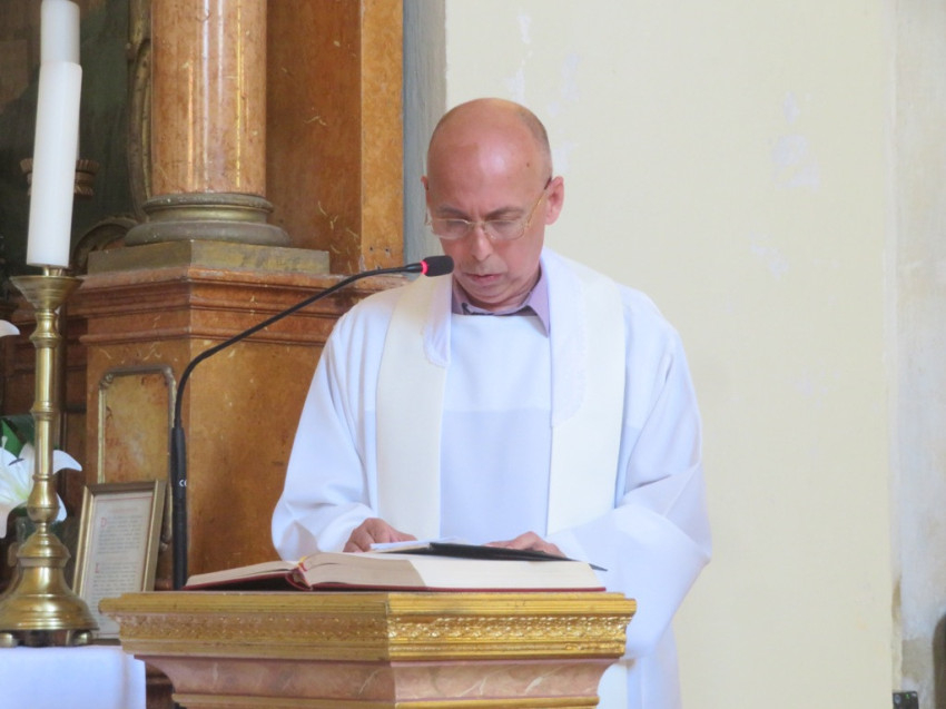 A szentmise kezdetén a közösség plébánosa, Bukovics István köszöntötte a nyugalmazott megyéspüspököt, a máriakéméndi polgármestert, a híveket és a zarándokokat.
