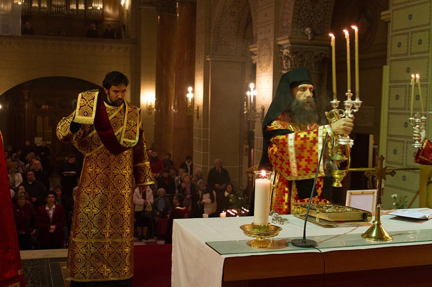 A lorettói litánia után akathisztoszt (ájtatosság az Úr Jézus, Szűz Mária, egyes szentek tiszteletére, a halottak emlékére – a szerk.) végeztek a görög és veszprémi kispapok közreműködésével. A hatodik irmosz (a bizánci szertartásban a kánon egy-egy ódájának első verse, mintastrófa; a rákövetkező versek ütem- és dallammintája – a szerk.) után Nagy Károly kanonok elmélkedett az anyaságról, az édesanya nagyon is konkrét, simogatásokban és gondoskodásban megnyilvánuló szeretetéről, amely feltétel nélküli.