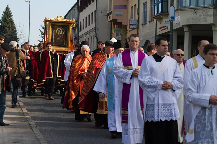 Kedd délután két órakor gördült be a veszprémi Krisztus Feltámadásáról nevezett templom elé a kegyképet szállító autó. Az Istenszülő ikonját Nagy Károly apátkanonok, Janka Ferenc parókus, Szabó Mihály volt szervezőlelkész és Janka György, a jelenlegi parókus édesapja fogadta a hívek, valamint a főegyházmegye számos papja és a hittudományi főiskola teológushallgatói kíséretében. A parakliszt (könyörgő ájtatosság az Istenszülő Szűz Máriához – a szerk.) Kocsis Fülöp görögkatolikus püspök vezette, a hívek pedig ikoncsókolásra járulhattak.