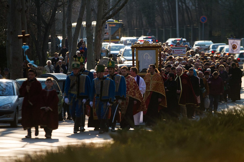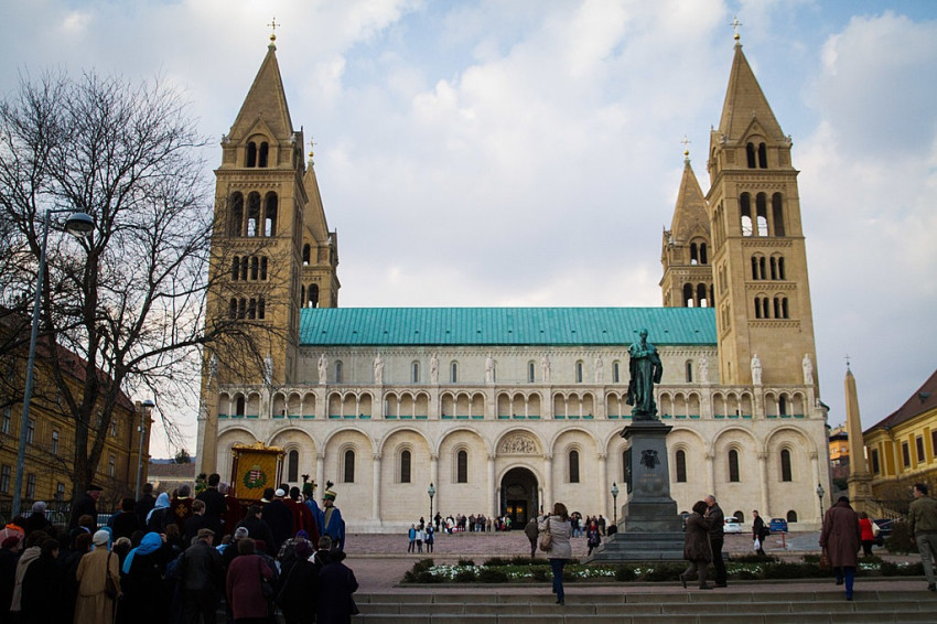 Ezt követően gyalog vitték a kegyképet a pécsi székesegyházba, ahol Udvardy György megyéspüspök köszöntötte. „Szívünk szeretetével, a gyermeki hazatalálás örömével, kéréssel, sokszor talán kudarccal a szívünkben köszöntünk, és kifejezzük hálánkat anyaságodért, oltalmadért” – fogalmazott.