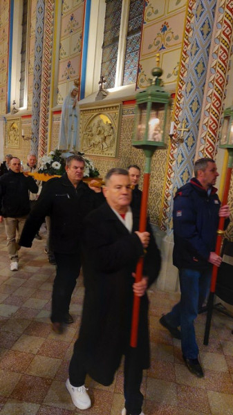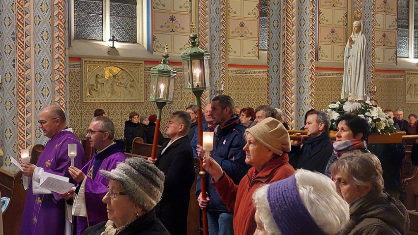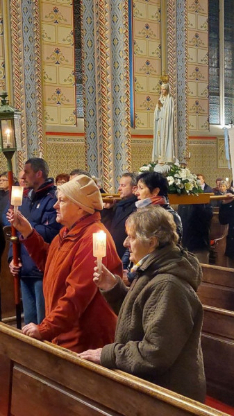 A szentmise végén, a szentségi áldás előtt gyertyás körmenetet tartottak a Fatimai Szűzanya szobrával. A hagyományoknak megfelelően a hívek a körmeneti ének versszakait felváltva magyarul, németül és horvátul énekelték.