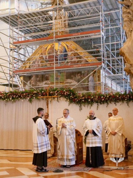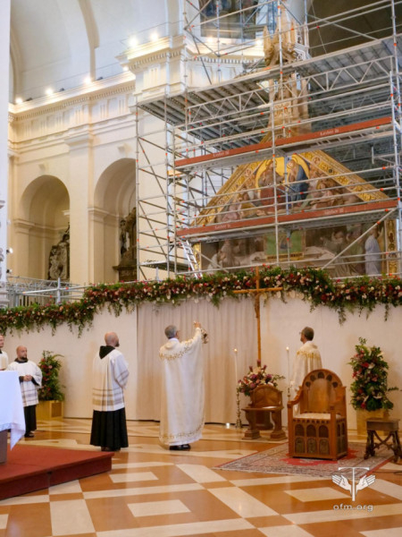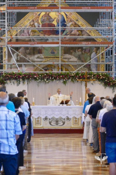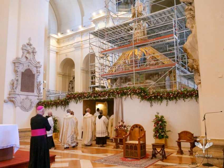 Massimo Fusarelli OFM miniszter generális augusztus 1-jén mondott homíliájában a Szűz Máriát, a keresztre feszített Krisztust és az Atya irgalmát összekötő kapocsról beszélt, Szent Bonaventura szavaira utalva.