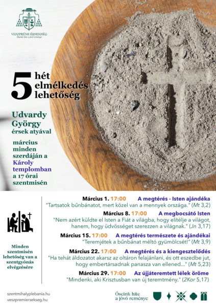 Szeretnénk méltó módon készülni húsvét ünneplésére, szeretnénk őszinte bűnbánatot tartani, szeretnénk a bűnbánat megtérés ajándékát befogadni és szeretnénk az életünkön változtatni. Nemcsak egyszerűen reparálni egy-egy területet, hanem Isten kapcsolatában élni, az Atyával való kapcsolatban élni az életünket, bizalomban élni az életünket. Adja Isten, hogy ezt az időt jól tudjuk felhasználni. Egészen biztos, hogy a Jóisten ebben az idei esztendőben is nevelni, gyógyítani akar bennünket, akarja, hogy fejlődjünk a Vele való kapcsolatban, és ezt az időt jól használjuk fel. Tartsatok bűnbánatot, mert közel van a mennyek országa.”