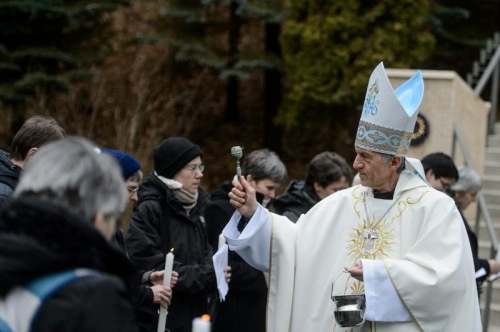A szentmise főcelebránsa Majnek Antal munkácsi püspök, ferences szerzetes volt, aki a szabadtéri oltárnál áldotta meg a gyertyákat, ahonnan a szent kapun áthaladva vonult a körmenet a bazilika szentélyébe. A püspök prédikációjában ugyancsak az evangéliumi élet jelentőségére hívta fel a rendtagok figyelmét: nem elég valamit meg nem tenni, elhagyni, hanem szükséges, hogy a nyolc boldogság áldásait kibontakoztassuk hivatásunk sokféle dimenziójában. A liturgiához mintegy száz hívő, köztük a különböző rendek világi, illetve harmadrendi tagjai is csatlakoztak. A szertartás során együtt imádkozták a magyar szerzetesség közös hálaadó imáját.