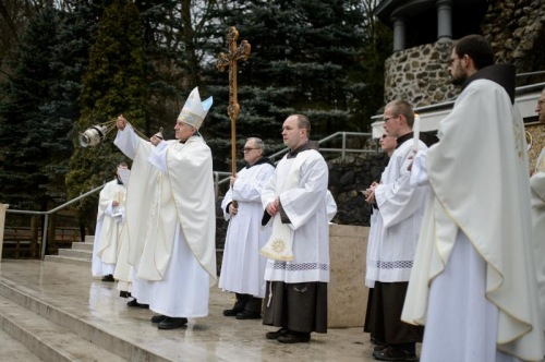 A délutáni szentségimádás alkalmával a szerzetes zarándokok megújították fogadalmaikat, és a Szűzanya oltalmába ajánlották hivatásukat.