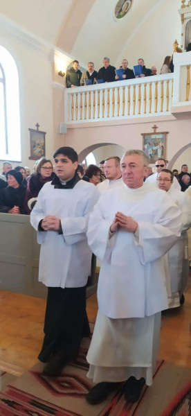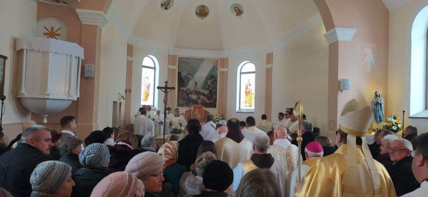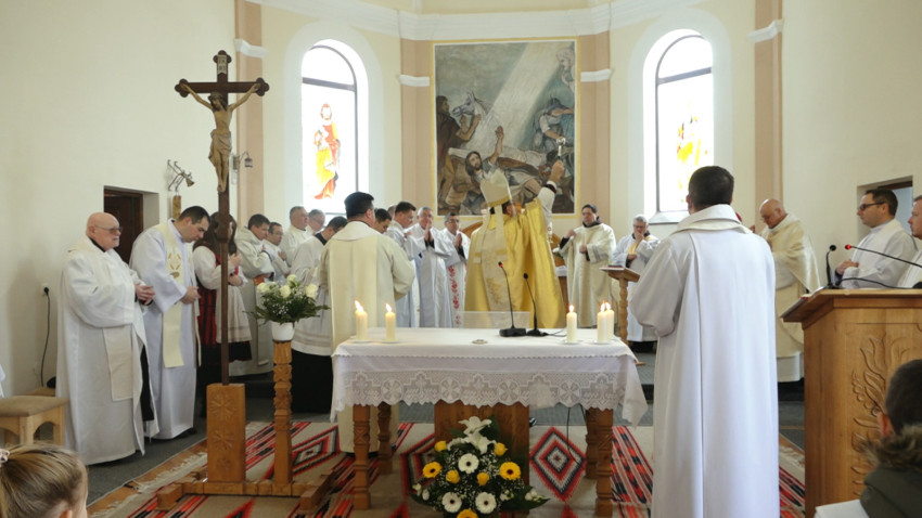 Kovács Gergely gyulafehérvári érsek az ünnepi szentmisét Tamás József nyugalmazott segédpüspökkel, a Hargita megyei faluból származó László Attila kolozsvári főesperessel, illetve a csíki plébánosokkal, papokkal és a csíksomlyói ferences szerzetesekkel együtt mutatta be, miután az új oltárba elhelyezte a régiből kivett ereklyéket, Adalbert és Kelemen vértanúk relikviáját.