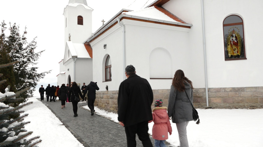 Csíkpálfalva jelenlegi templomát 1943-ban kezdték építeni, mert egy évvel korábban leégett a települést szolgáló hatszáz éves kápolna. A delnei egyházközséghez tartozó településen „nehéz időkben, áldozatok árán is vállalták a hívek a templomépítést, mert fontos volt számukra a hitük, az imádság és a lelki töltekezés” – mondta az ünnep résztvevőit köszöntő Csíki Szabolcs plébános.