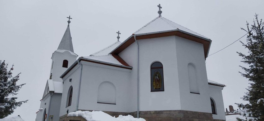 1949-ben fejeződött be a templom építése, és június 12-én, a csíki bérmaútja során a faluba látogató Márton Áron püspök szentelte fel – letartóztatása előtt kilenc nappal.