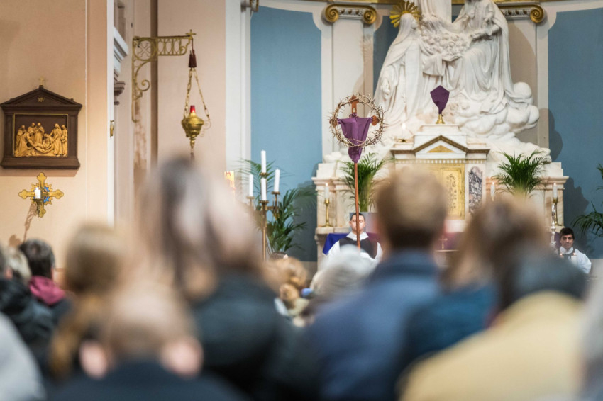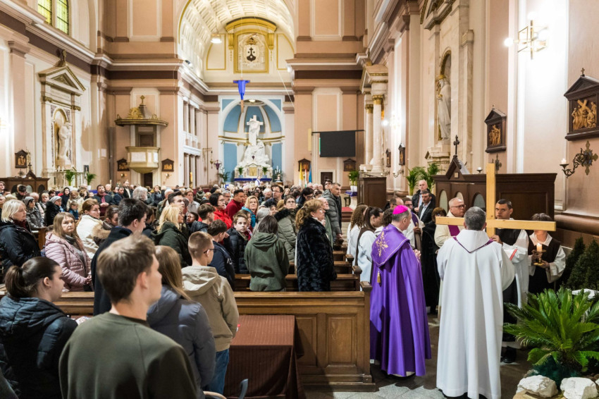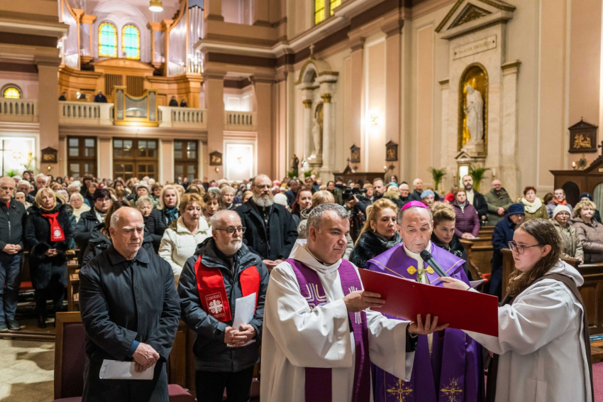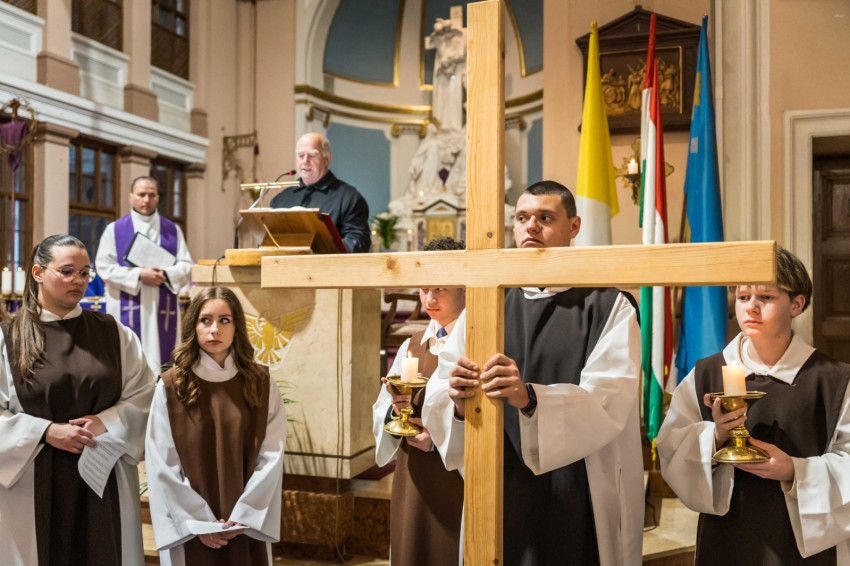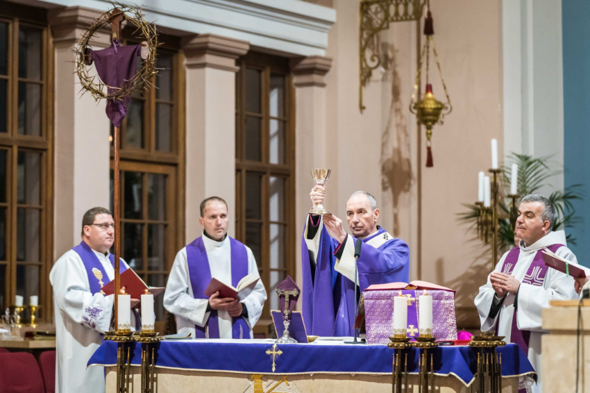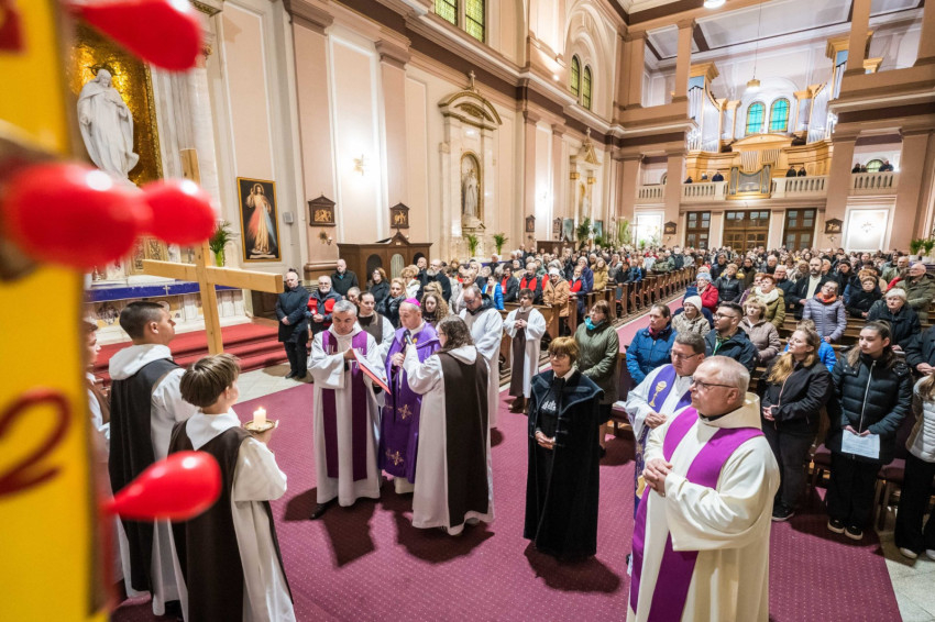 A keresztutat követő ünnepi szentmisén Udvardy György érsek hangsúlyozta, hogy az Egyház ebben a kegyelmi időszakban „föltárja Jézus személyének a titkát, föltárja a bűn titkát, az ember titkát, és föltárja a megtérés útját és a titkát is mindannyiunk előtt.