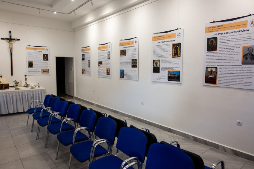 Mindenféle latin misekönyv és a plébánián fellelhető régi könyv is ki van állítva a tárlókban. A falakon a plébánosok portréi és hatalmas tablók, amelyek összefoglalják a plébánia és a templom történetét.