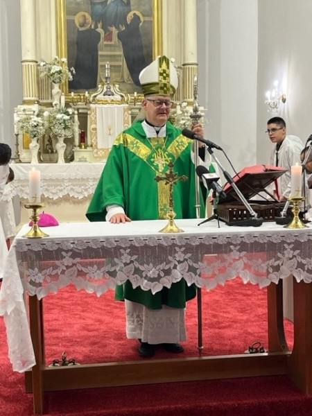 A megyéspüspök arról is beszélt, személyes megújulásunkat az evangélium szavaihoz kell igazítanunk: szeresd Uradat Istenedet, de szeresd embertársadat is, ahogy önmagadat szereted. „Megújulásra hív Jézus mindannyiunkat, nemcsak ennek a templomnak a közösségét. Amikor most hálát adunk a felújított templomért, akkor éppen az egész Anyaszentegyház a megújulás útján van, a szinodális úton. Ferenc pápán keresztül az Egyház megújulásra hív bennünket, hogy Isten, az Egyház és egymás szeretetében megújuljunk. Meg kell értenünk, hogy mi vagyunk az Egyház, mi képviseljük azt a világban. Az Egyház kovász és világító jel, de csak akkor, ha mi kovászai leszünk ennek a világnak és Krisztus szeretetével világítunk. Rajtunk múlik, megújulunk-e Isten szeretetében.