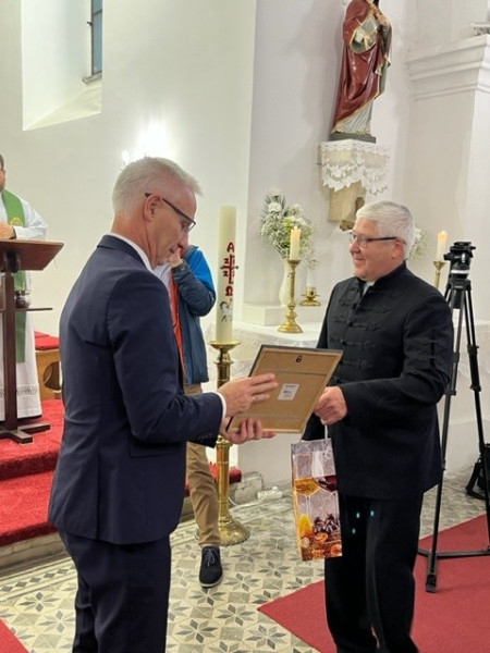 A szentmise elején a tárnoki plébánia világi elnöke, Mülhauser Zoltán mutatta be azt a tízéves folyamatot, amelynek során a plébánia, valamint a plébánia tulajdonát képező Rózsafüzér Királynéja-templom és a Szent Rókus-kápolna renoválása befejeződhetett.