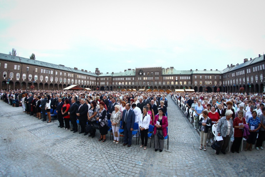 A szentmisét követően a megújult dóm átadásával folytatódott az ünnepség. Kiss-Rigó László és Balog Zoltán miniszter mondtak köszöntőt.
