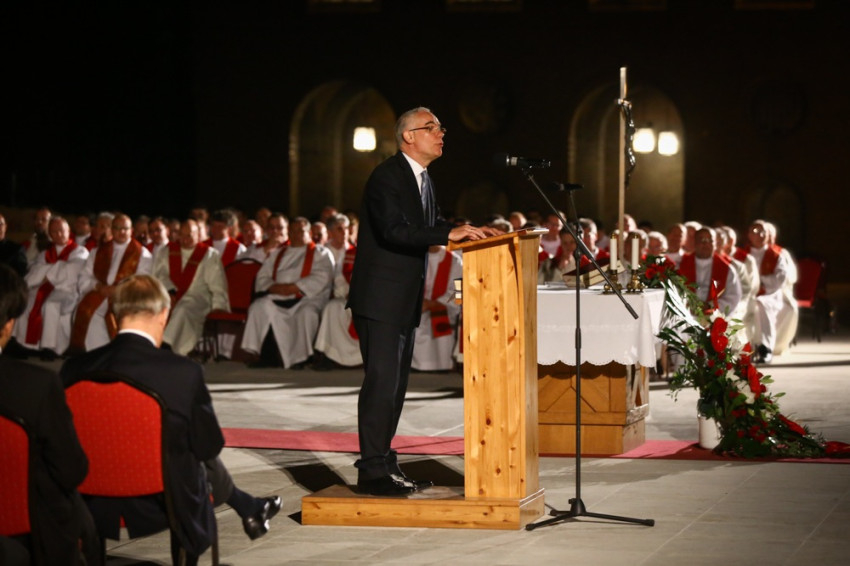 Balog Zoltán, az emberi erőforrások minisztere beszédében rámutatott: ha bizonyítani akarnánk, hogy az igaz hit kultúrát teremt, és a hit sem létezhet kultúra nélkül, keresve sem találnánk alkalmasabb templomot a dómnál. A dóm építésében megmutatkozik a hit ereje és mellette a kultúra ereje is.