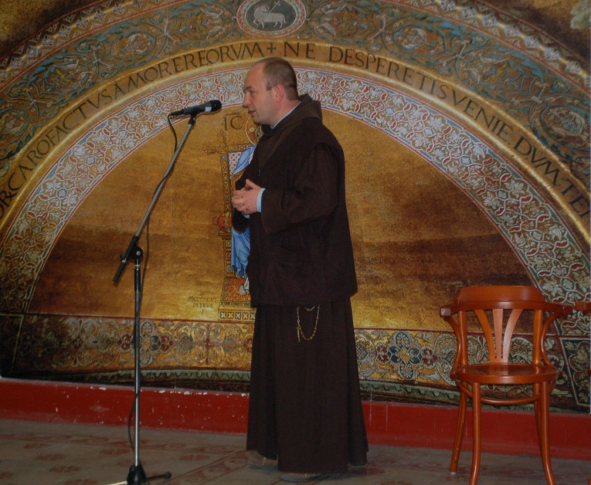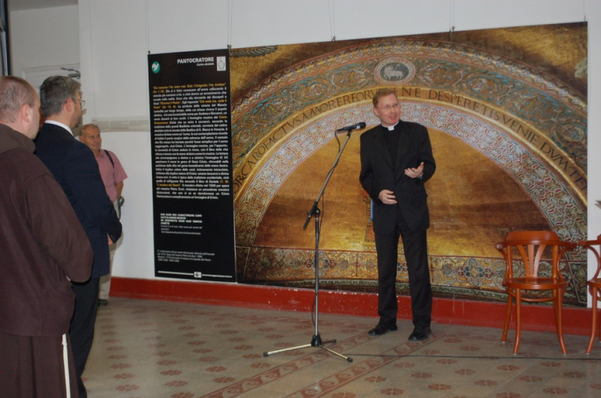 Kálmán Peregrin OFM Rupnik atyával való beszélgetését idézte fel a megnyitón. Marko Ivan Rupnik szlovén jezsuita alkotása díszíti a Mátraverebély-Szentkúti Nemzeti Kegyhely szabadtéri oltárát. A boldoggá avatás előtt álló ferences vértanúk ábrázolásával kapcsolatban Peregrin testvér először azt kérte: fotószerűen ábrázolja őket a mozaik, hogy akik még személyesen ismerték őket, azok rájuk ismerhessenek. Rupnik atya viszont végül amellett döntött, hogy csak egy-két jellemző vonást örökít meg, hiszen az örök életben újjáteremtett, kisimult arcot kapunk Istentől.