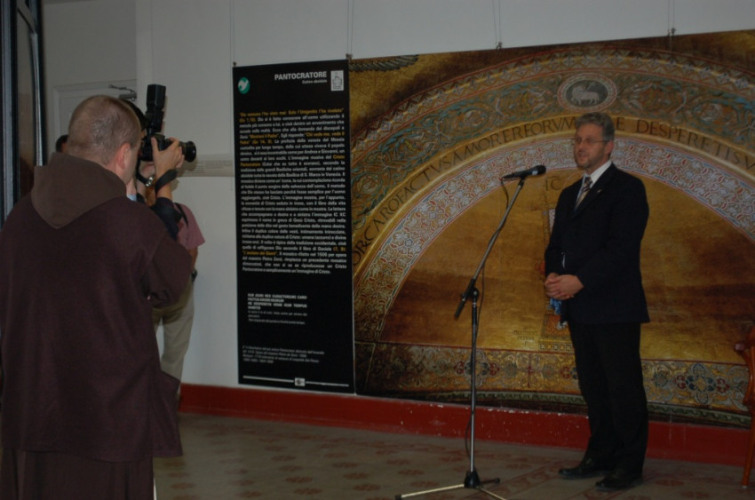 Szuromi Szabolcs, a PPKE rektora nyitotta meg a kiállítást. Többek között felhívta a figyelmet arra a tényre, hogy az eredeti mozaikok helyszínén, a velencei Szent Márk-bazilikában kisebb esélye van rá a látogatónak, hogy ilyen jól megvilágítva, ilyen kényelmesen megcsodálhassa a gyönyörű bizánci stílusú mozaikokat, a Velencei Patriarkátus kincseit.