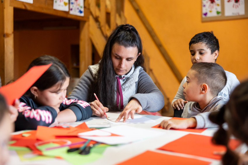 Az alapítvány központja az Arló közepén épült „Befogadlak” Közösségi Ház. Az udvarban nyolc-tíz éves gyerekek játszanak, labdáznak, miközben mi Janka nővérrel beszélgetünk.