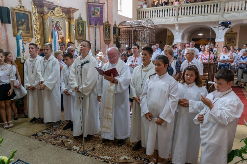 A szentmise után körmenet, majd a templomba visszatérve oltárkerülés következett. A búcsú idén is az osli népvesperás eléneklésével zárult délután.