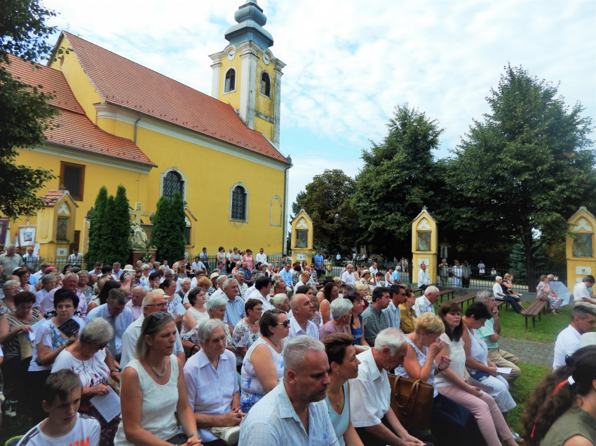 Tavaly az eső, idén a hőség próbálta meg az ünneplőket, nemcsak a zarándokutat járva, de a szabadtéri szentmise idején is. Utalt erre szentbeszédében a szónok, Márfi Gyula is, mondván: itt vagyunk most, próbára tesz az időjárás, de majd elfelejtjük.