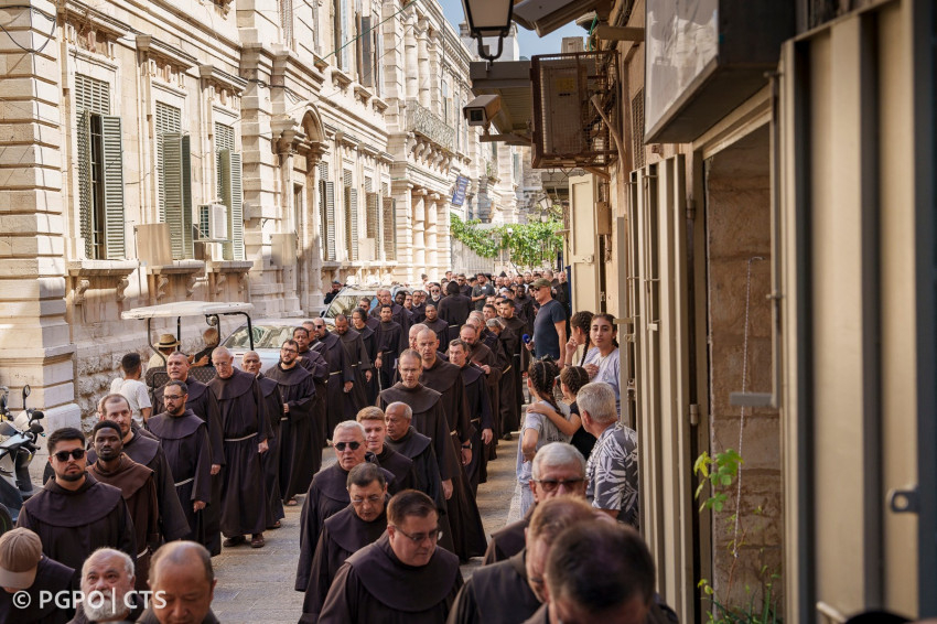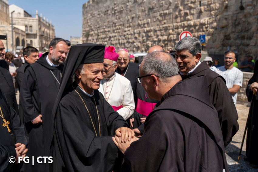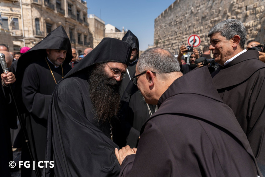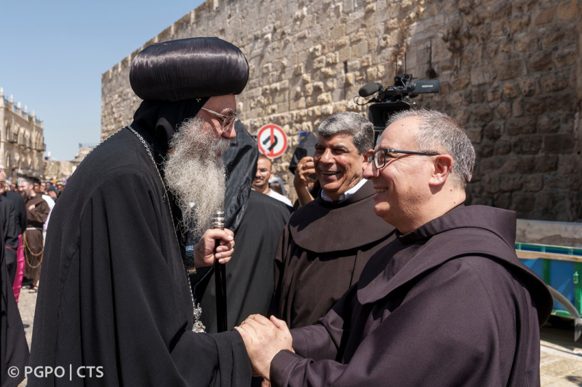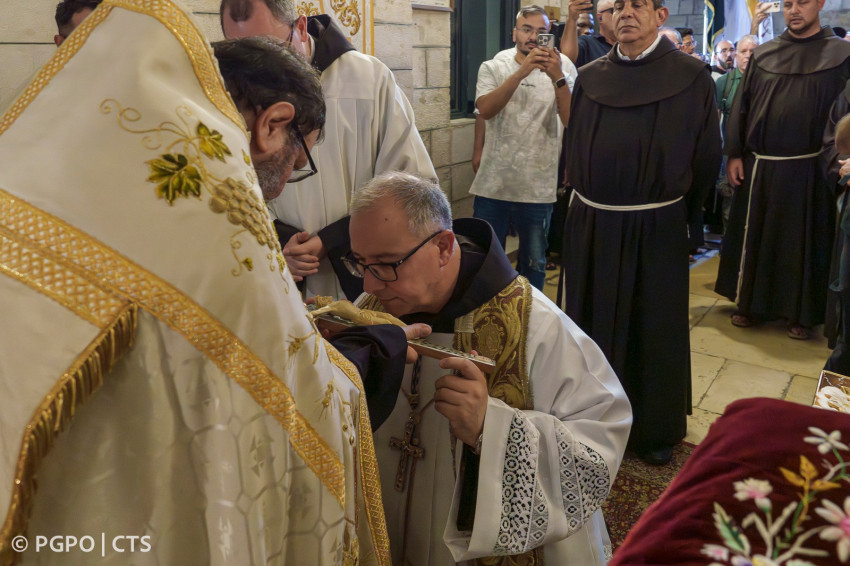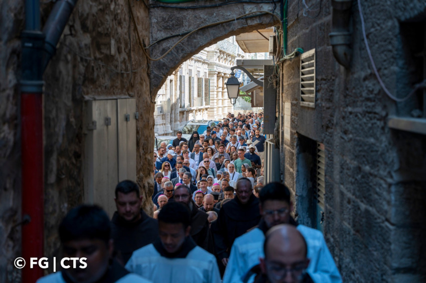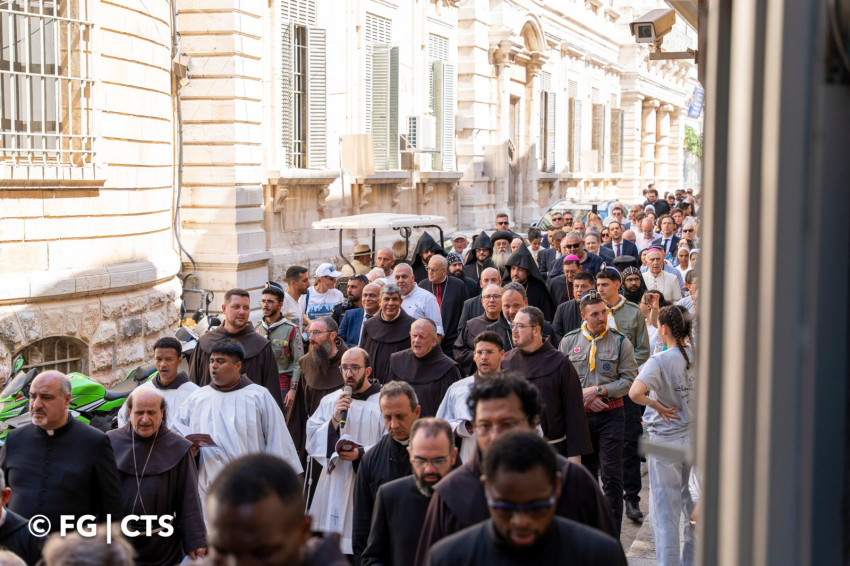 A körmenet a Szent Megváltó ferences templom és kolostor felé haladt. A menet elején a kusztódia szerzetesei haladtak, őket követte az új kusztos, majd Ibrahim Faltas OFM, a kusztódia vikáriusa és Alojzy Sławomir Warot OFM generális vizitátor. A menetet az Te Deum laudamus himnusz éneke kísérte.