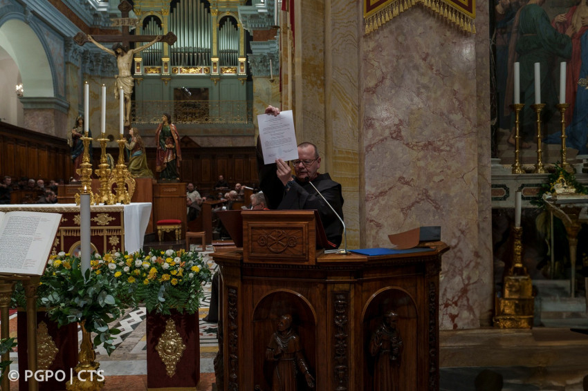 Az egybegyűltek előtt a generális vizitátor felolvasta a rend miniszter generálisa, Massimo Fusarelli OFM által kiadott kinevezési dekrétumot. A kusztos ezután az oltárhoz lépett, és kezét az evangéliumra helyezve letette a hivatali esküt.