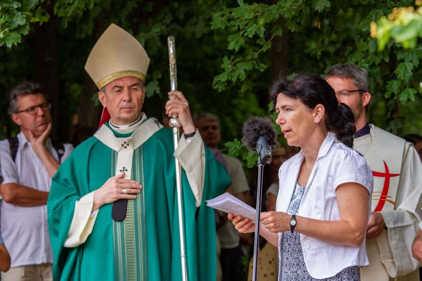 Az ünneplő családokat Gertrud-Maria Erhard schönstatti nővér köszöntötte. Beszédében kiemelte, a kereszt alkotója, Ozsvári Csaba 2009 júliusában Óbudaváron hunyt el váratlanul egy ünnepi szentmisét követő agapé közben. Élete utolsó szentmiséjén felajánlotta életét Magyarország lelki megújulásért. Tíz évvel később a magyar egyház vezetése az általa készített missziós keresztet jelölte ki arra a célra, hogy a Kárpát-medencét körbejárva inspirálja a közösségeket a megújulásra az Eucharisztiában.