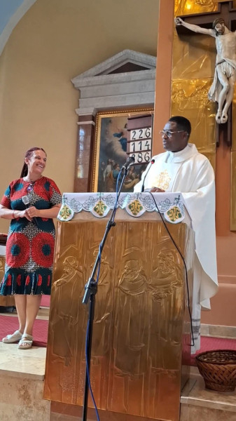 – Réka szervezte minden programomat. Amikor ő jön Onitshába, mi szervezzük meg a programját, hiszen ott mi tudjuk, mire van szükségük az embereknek, itt pedig ő tudja. Tegnap Dabason voltunk, a Veni Sancte szentmisén prédikáltam és a gyerekeknek beszéltem. Réka azonban jobban el tudja mondani a programomat.