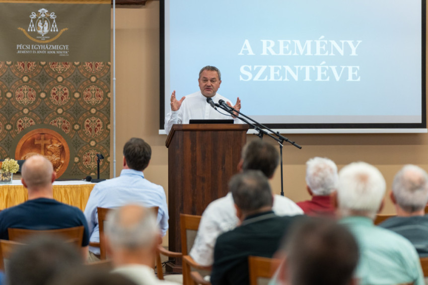 Felföldi László pécsi megyéspüspök, a férfitalálkozók ötlet- és állandó házigazdája előadásában az Isten által nekünk adott személyes és egyedi küldetésünkön keresztül láttatta a remény témájának mélyét.