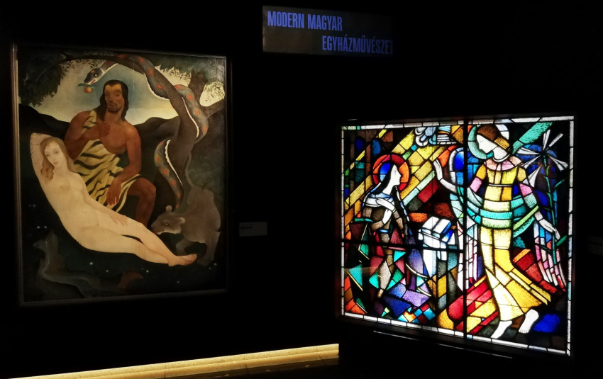 A kiállítás kuriózuma mindenképpen Sztehlo Lili, akinek csodás üvegablak-tervei, illetve egy restaurált eredeti darabja is látható Angyali üdvözlet címmel.