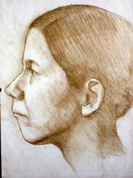 – Eleinte nem kifejezetten a környezetemben élőket rajzoltam. Kicsit vissza kell mennem az időben. Amikor az egyetemen felmerült a kérdés, hogy mi legyen a diplomamunkám, úgy éreztem, a portré érdekel a leginkább. Mivel azonban még nem tartottam magam elég gyakorlottnak ezen a téren, elkezdtem A/4-es méretben portrékat rajzolni az évfolyamtársaimról és más egyetemek diákjairól. Afrikai, közel-keleti, zsidó származású hallgatók arcképeit rajzoltam, és természetesen magyar arcokat is, a jellegzetes vonásokkal. Lenyűgözött ez a sokféleség, és Isten gazdagságára utalt. Érdekes és értékes dokumentumértékük is van ezeknek a különféle nemzetiségű embereket megjelenítő arcképeknek. És valóban, ezek találkozások is, sokszor néma találkozások. Bár néha előfordul, hogy beszélgetünk a portré készítése közben, ügyelve arra, hogy ez ne akassza meg a munka folyamatosságát. Sokan mondták, hogy mialatt rajzoltam őket, lehetőségük nyílt az elmélyedésre, a gondolkodásra, ami máskor nem adatik meg nekik. Persze néha elálmosodtak, el is aludtak,