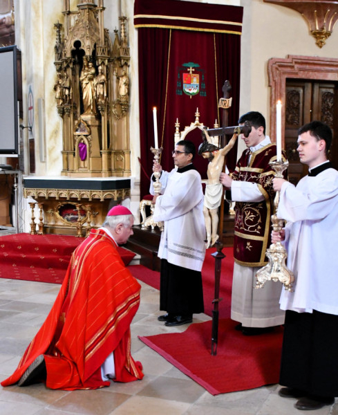 Urunk szenvedésének napján, nagypénteken, a liturgiát Kerekes László segédpüspök végezte Kovács Gergely érsekkel, Jakubinyi György nyugalmazott érsekkel és a központi papsággal együtt. A liturgiát megelőzően a segédpüspök keresztutat végzett a székesegyházban.