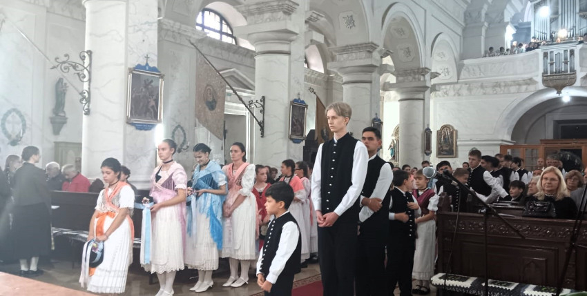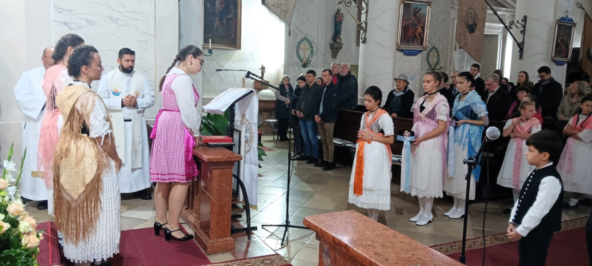 A szentmise végén a templomban megáldották a menekülés és a két deportálás áldozatainak kétnyelvű emléktábláját, amelyet a helyi Német Fórum adományozott.