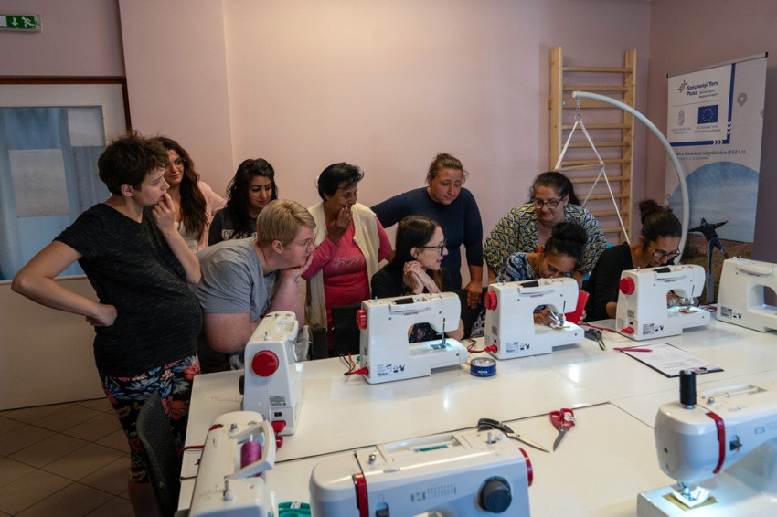Szöllősi Réka több mint tizenöt éve tart varrótanfolyamokat, nagy rutinja van a kezdők terelgetésében. Mindenkinek türelmesen segít, a kezdeti csomózódásokat, rontásokat javítja, a csálé befűzéseket kiigazítja, bátorítja és az elvégzett részfeladatok után megdicséri tanítványait. Ahogy ügyesednek, a nők egyre beszédesebbek, lelkesen sorolják, mi mindent csinálnak majd önállóan a varrógéppel, felhajtják a férjük nadrágjának szárát, beszegik a függönyt, megvarrják a szakadást a gyerekeik ruháin, ovis tornazsákot, sőt bevásárlószatyrot is varrnának, mert a bolti 150 forint, és mire hazaérnek vele, elszakad. Mosható betétről nem esik szó.