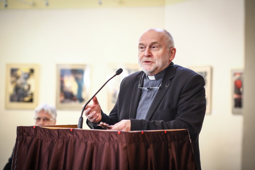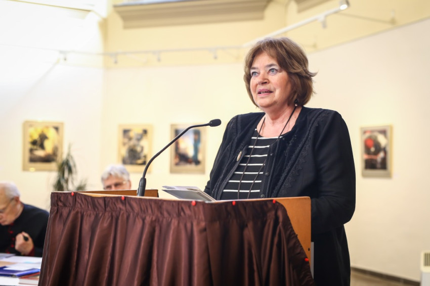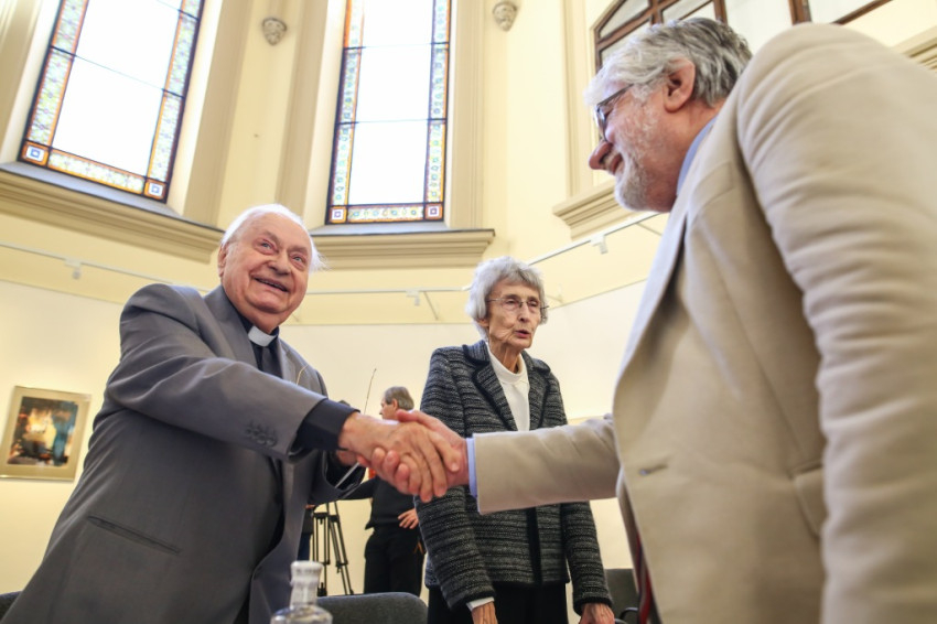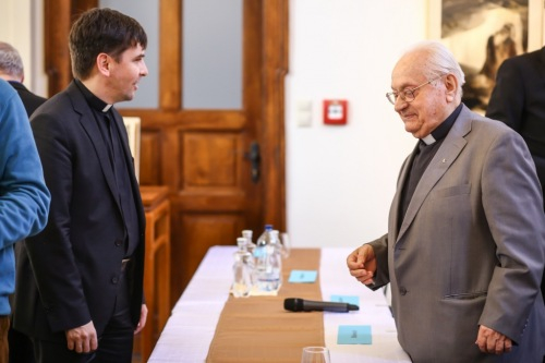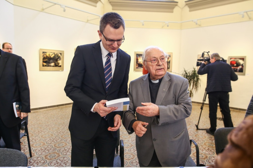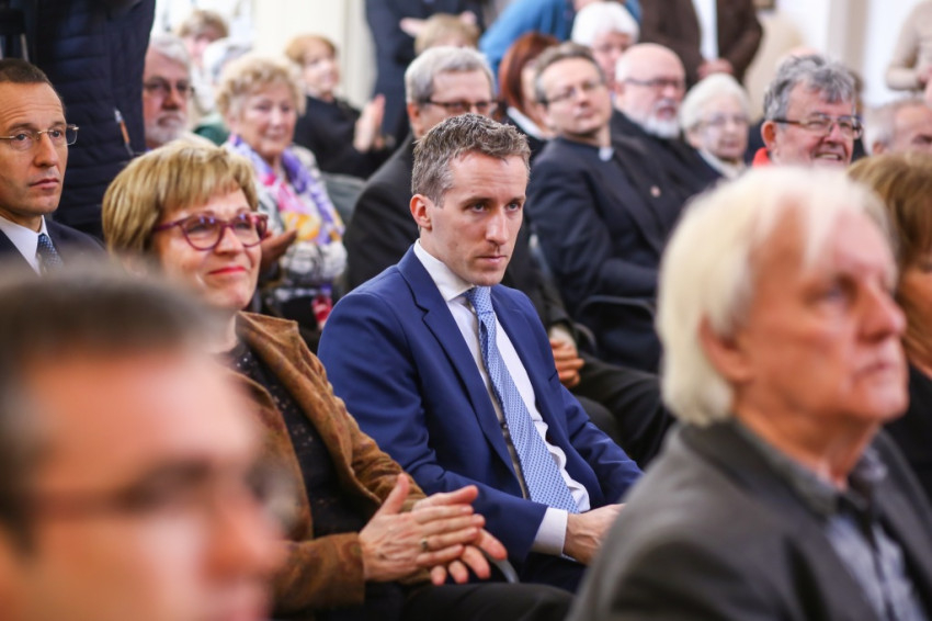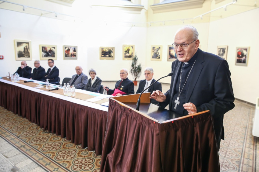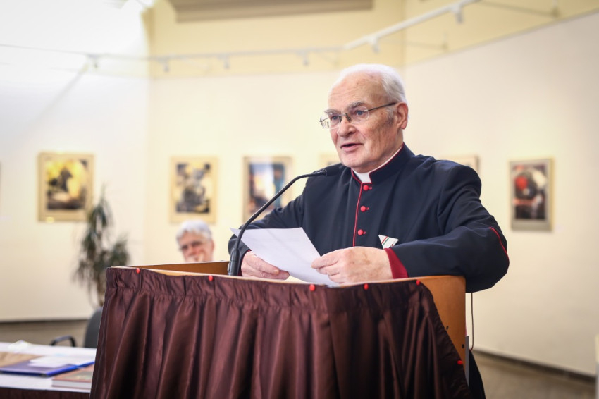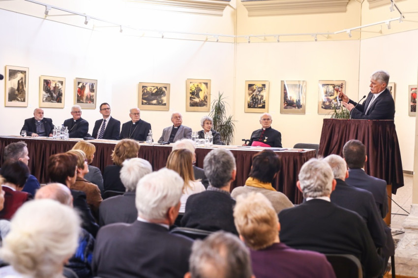 Horváth Béla és a házigazda Sajgó Szabolcs rövid köszöntője után Erdő Péter bíboros megáldotta a jelenlévőket, illetve röviden ismertette Mindszenty József bíboros boldoggáavatási ügyének legújabb részleteit, kiemelve, hogy a közelmúltban Ferenc pápa jóváhagyta azt a határozatot, amely megállapítja, hogy Isten szolgája Mindszenty József bíboros, esztergomi érsek, Magyarország prímása hősies fokon gyakorolta a keresztény erényeket. A bíboros hozzátette: mindez fontos lépés, de ahhoz, hogy a prímást boldoggá avassák, szükség van még egy igazolt imameghallgatásra. Bár Mindszenty József esetében van dokumentált csodás gyógyulás, ennek vizsgálata és csodaként való elismerése további feladatot jelent.